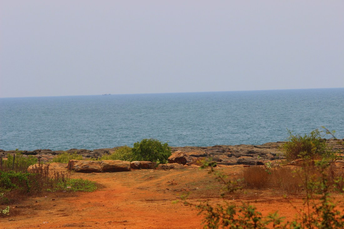 The rocky seashore is beyond the garden boundary. Hence, the name- Rock Garden. As we went closer to the shore, the smell of the sea, the sound of waves crashing against the rocks, the salty air soothed my senses. The water was crystal clear, not at all polluted. I haven’t seen a clear sea for years! There are beaches in Mumbai too, but not this clean.